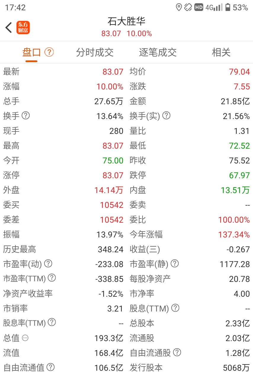 $石大胜华(SH603026)$ 看了一下历史最高价是348.24,是什么让它现在价格变化这么大的?