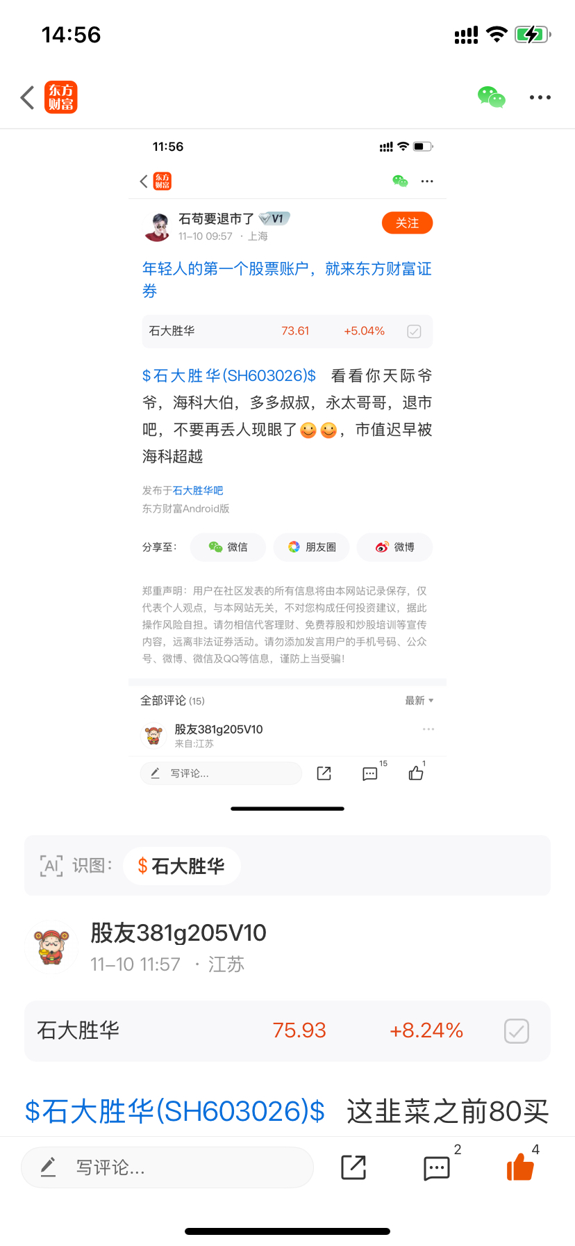 $石大胜华(SH603026)$ 我就想问这个石苟还叫吗?把我拉黑了