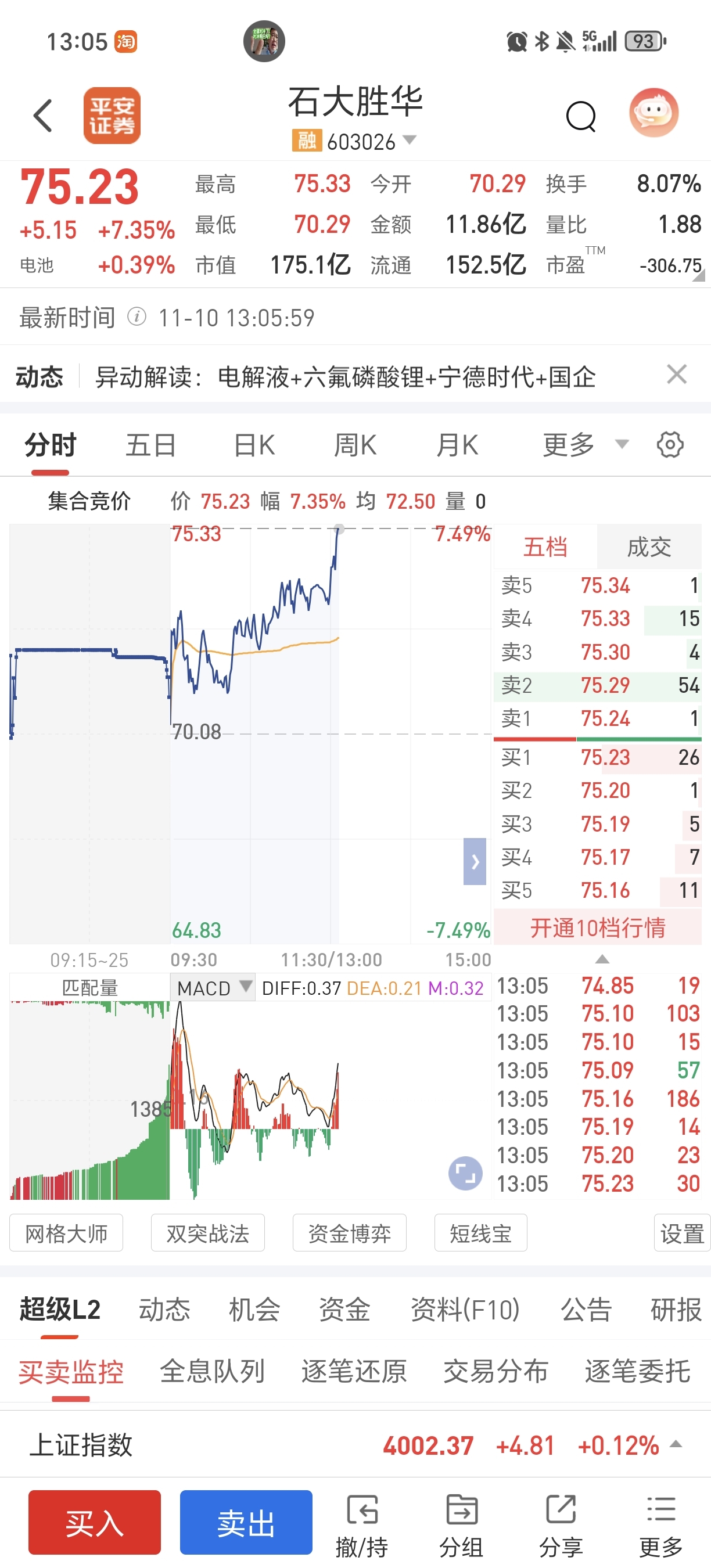 $石大胜华(SH603026)$ 30多元看到现在的100,就是不敢买,我这辈子吃不上2个菜的人