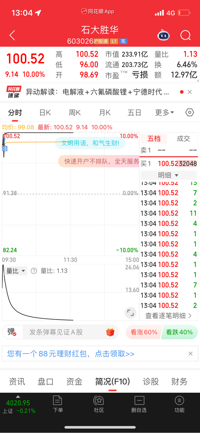 $石大胜华(SH603026)$ 哎 卖飞了 明天还能涨