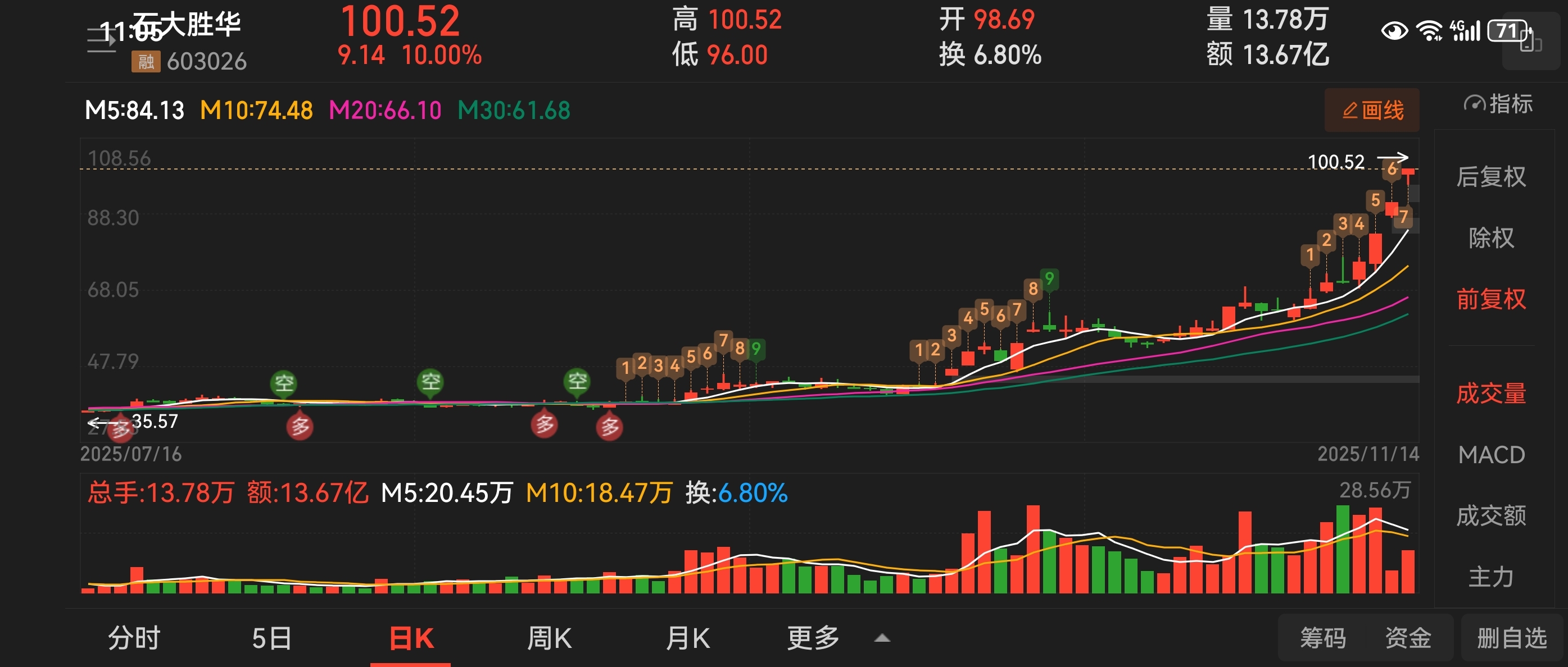 $石大胜华(SH603026)$ 最后的这三个板就是交给市场,交给剩下的散户,就这么简单!品吧
