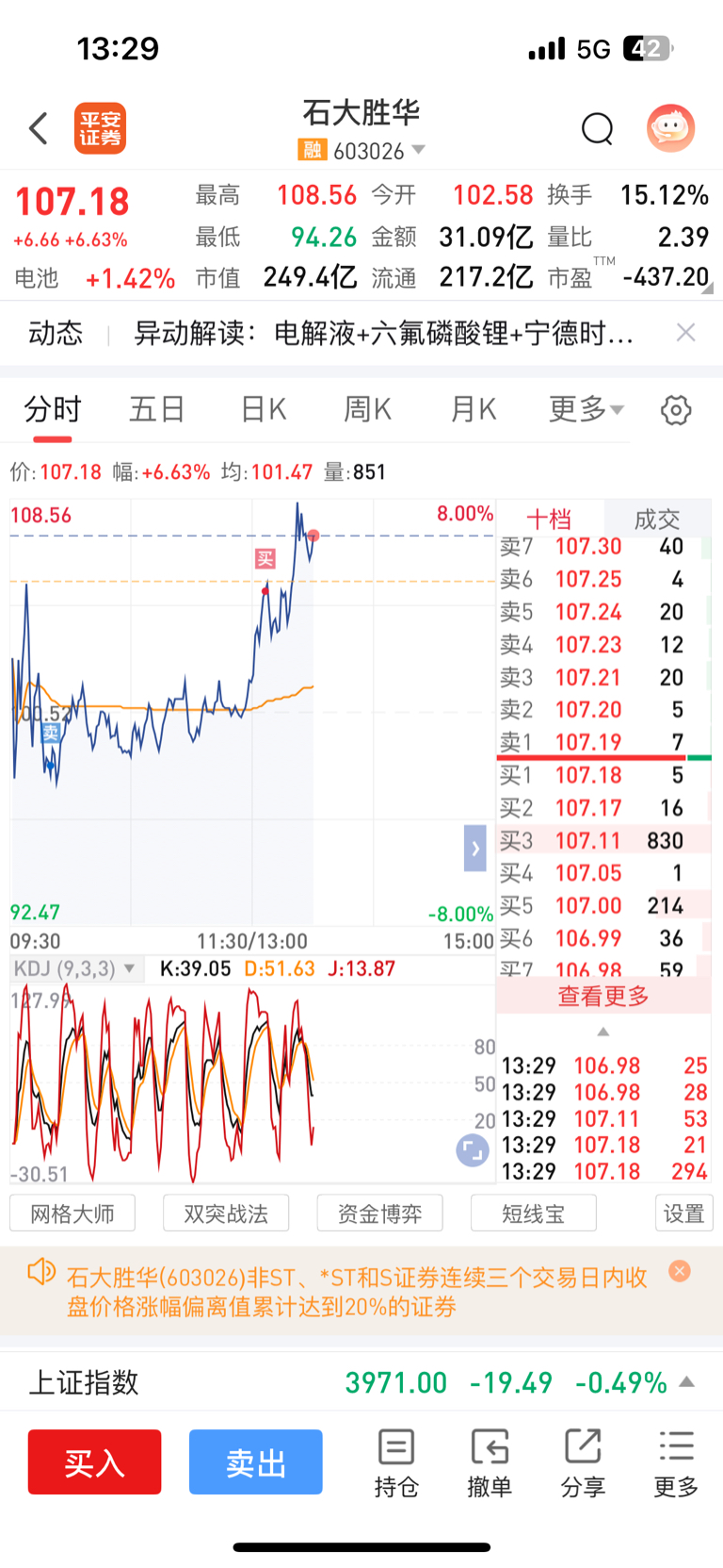 $石大胜华(SH603026)$ 爱咋地咋地吧 满上了
