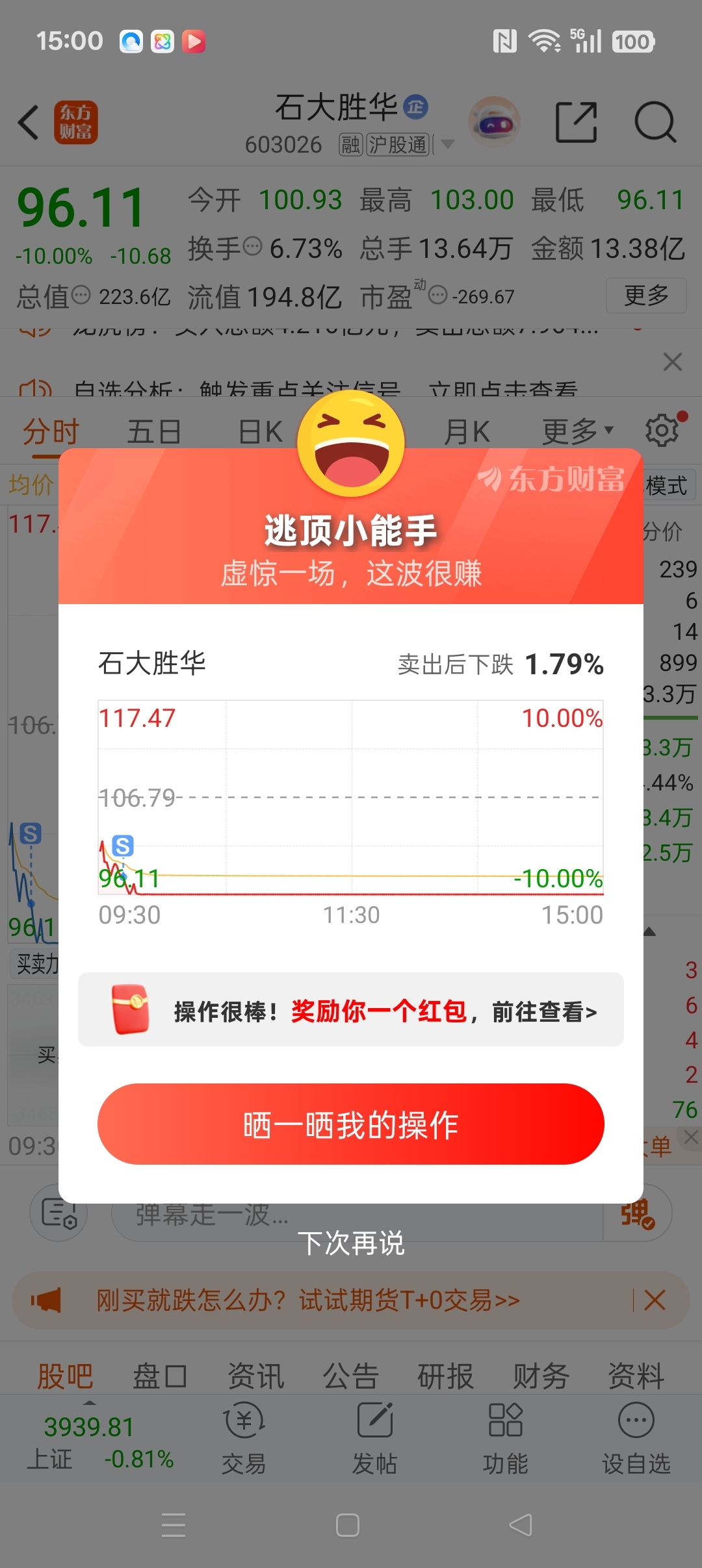 $石大胜华(SH603026)$ 亏损这么多还逃顶小能手