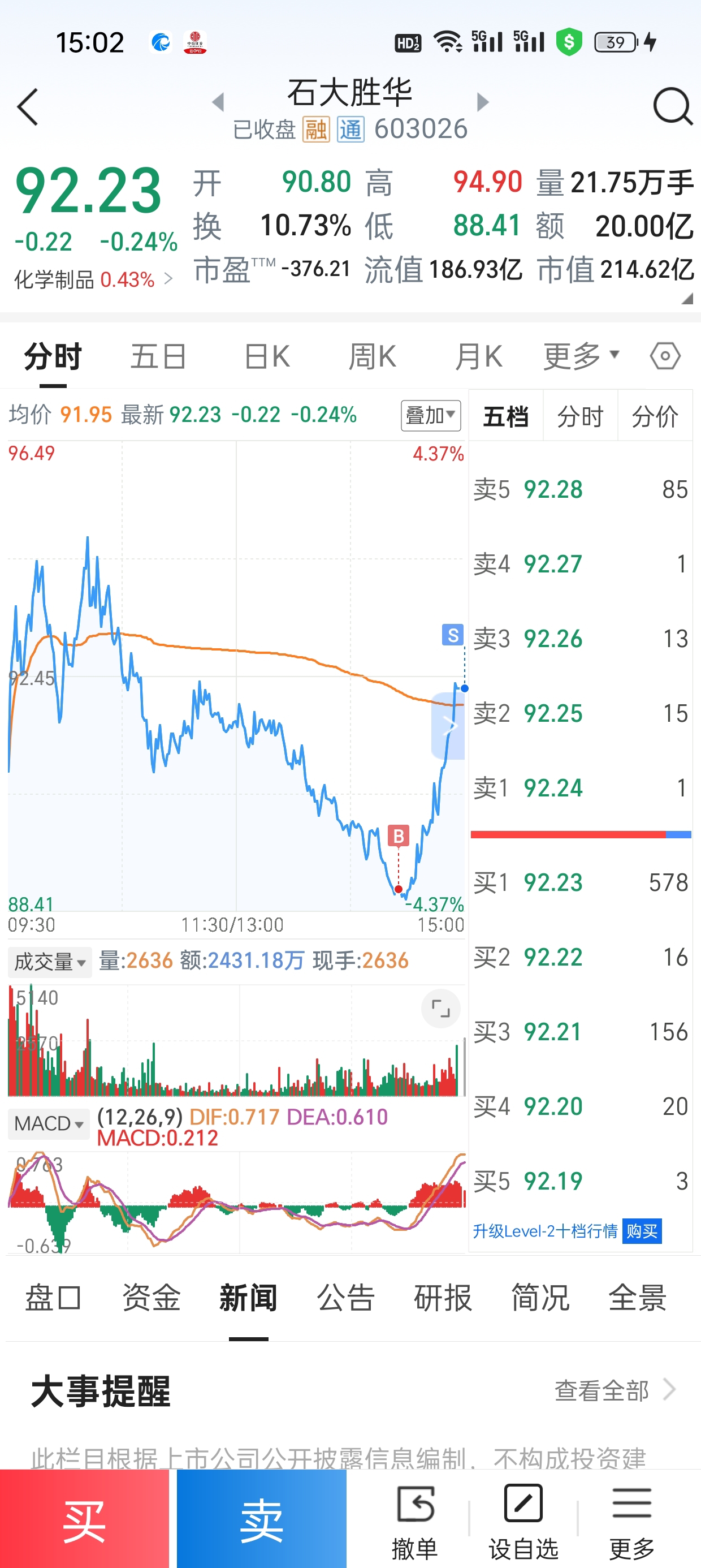 $石大胜华(SH603026)$ 又是完美的一天,留底仓,2成仓来回玩