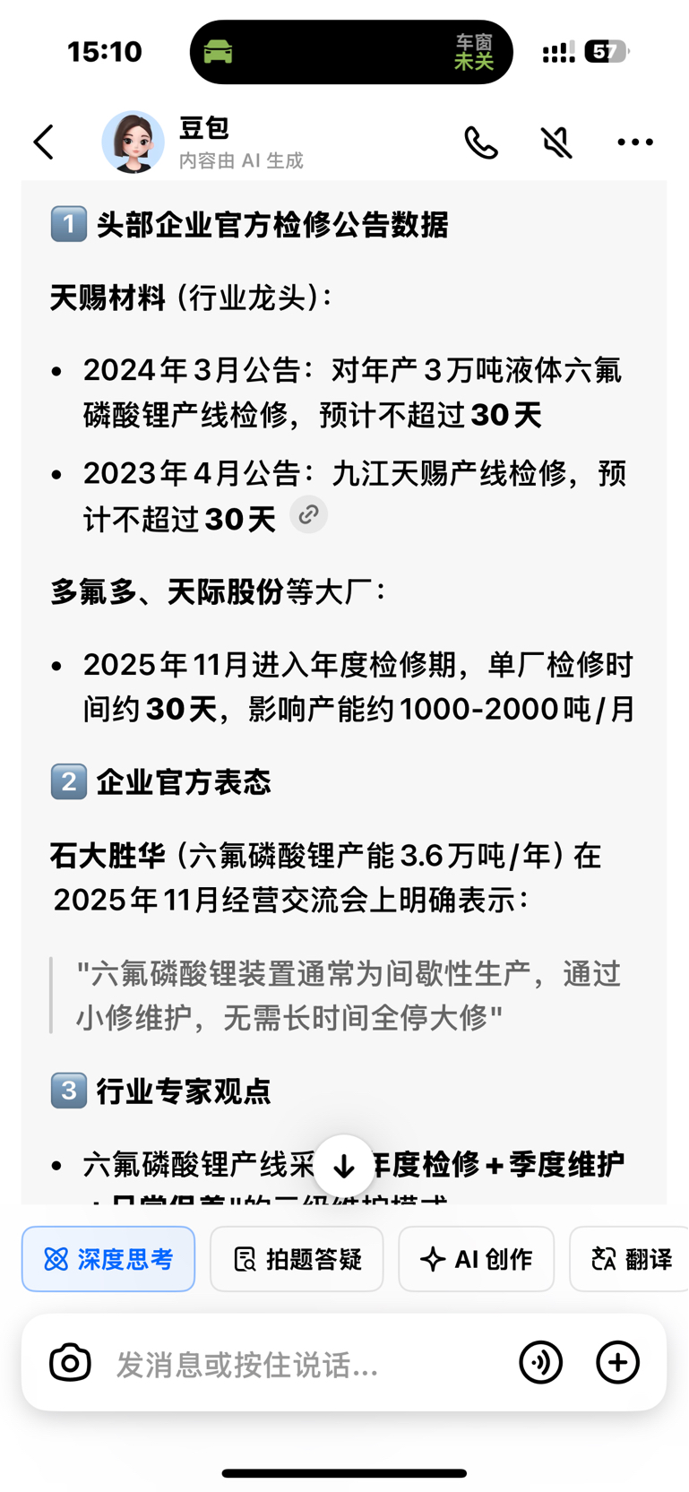 是谁说六氟磷酸锂产线一年要检修一两个月的???