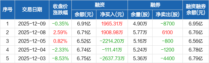 石大胜华:融资净买入1965.31万元,融资余额6.91亿元(12-09)