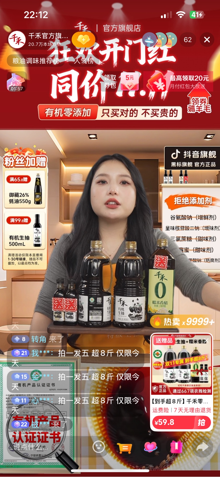 $千禾味业(SH603027)$ 一个直播间,赶上一个大超市了!