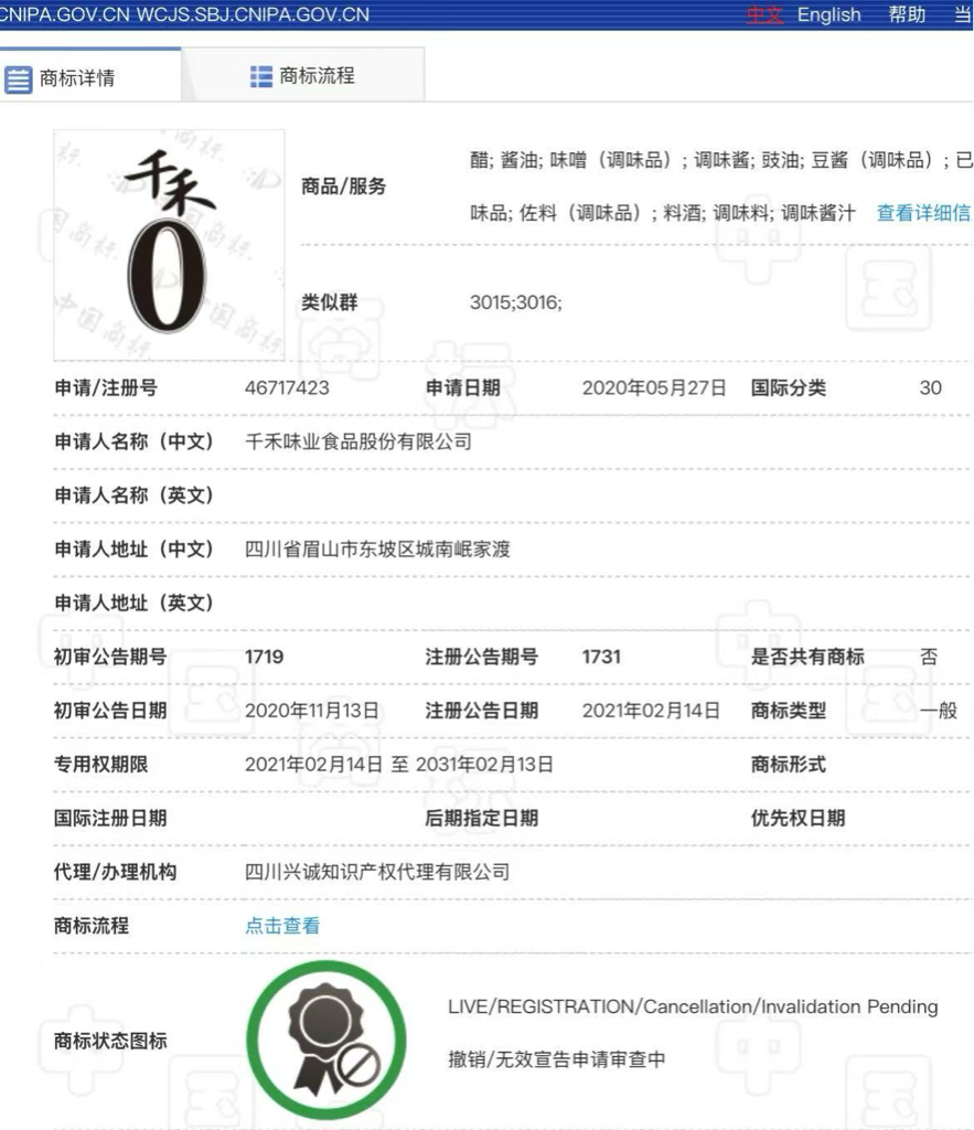 $千禾味业(SH603027)$ 千禾 0 的商标状态啥时候给恢复一下?