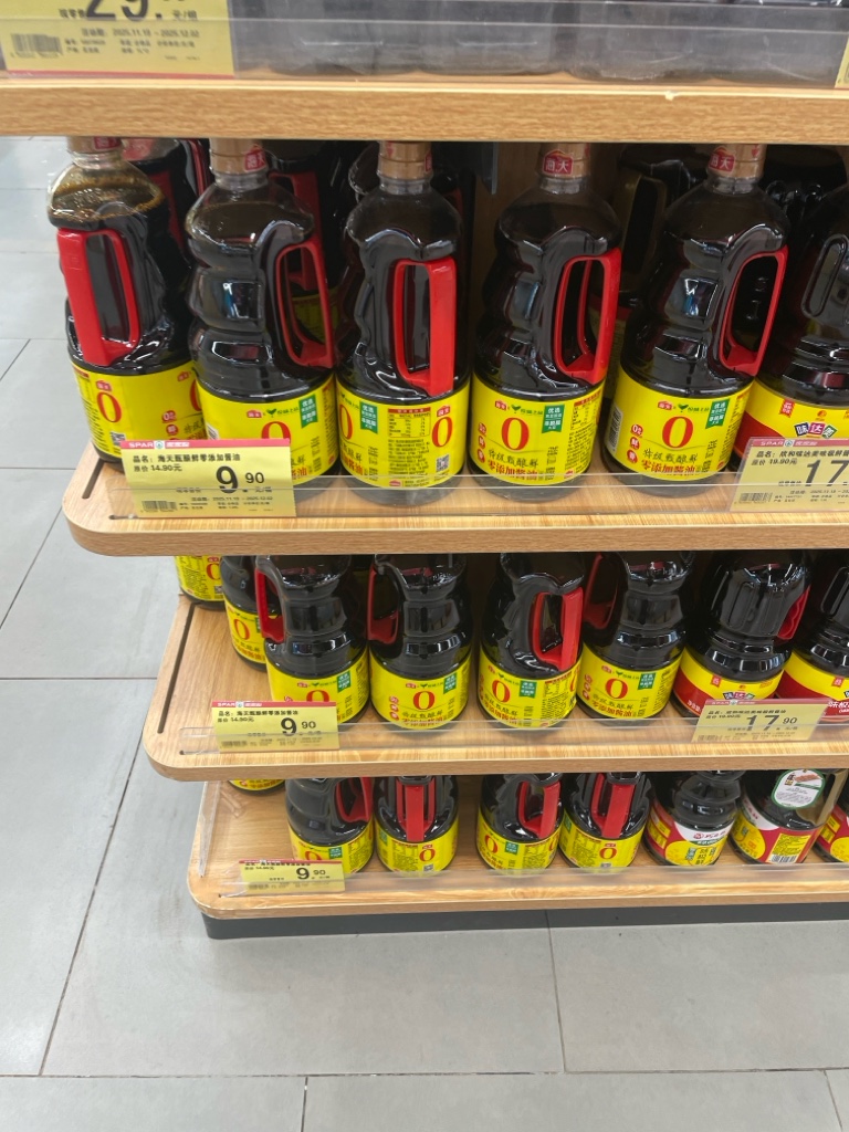 在超市,海天的酱油只能堆在角落,唯独千禾的酱油在最显眼的位置
