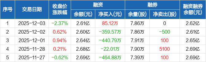 千禾味业:融资净买入85.12万元,融资余额2.61亿元(12-03)