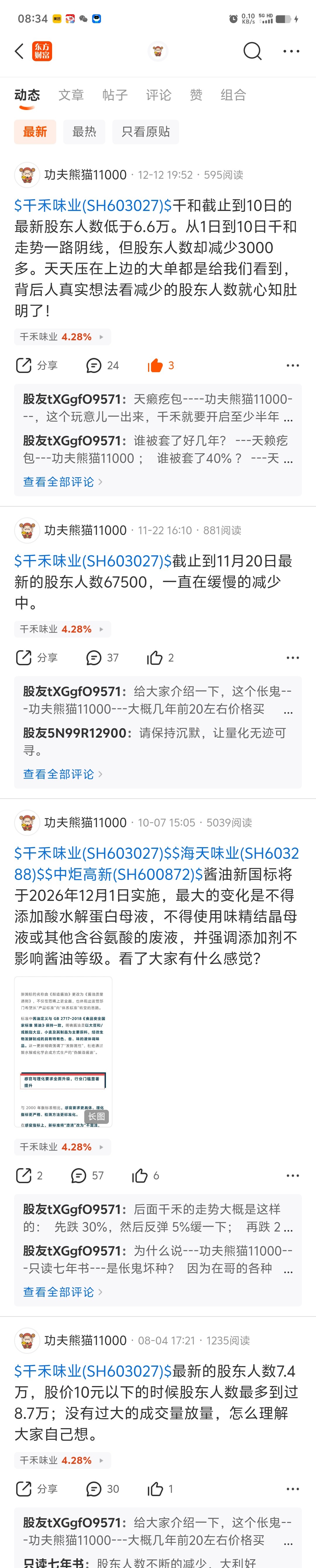 $千禾味业(SH603027)$ 三次提醒大家注意股东人数的变化,我只能尽力如此,懂的人自然会懂!千和四季度每股业绩2毛左右,会创历史最佳季度业绩,二季度进来的主力不是慈善家,没有确实的消息也不会上拉下压费这么大劲来解放散户。明年会实行新的酱油国标、27年二月会实行新的标签标准,再加上正在制定的预制菜国标,两年内的调味品行业会有巨大的变化,千和现在就提前布了这些变化,这就是千和主力进来的底气。