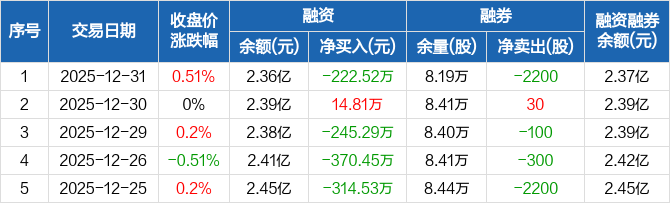 千禾味业:融资余额2.36亿元,创近一年新低(12-31)