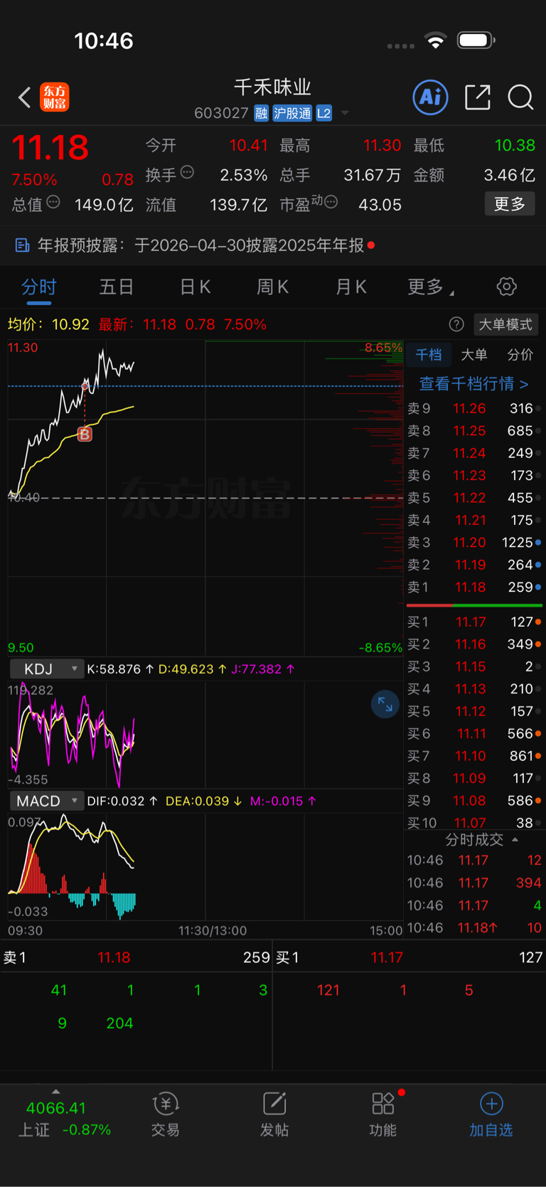 $千禾味业(SH603027)$ 涨停吧,求你了