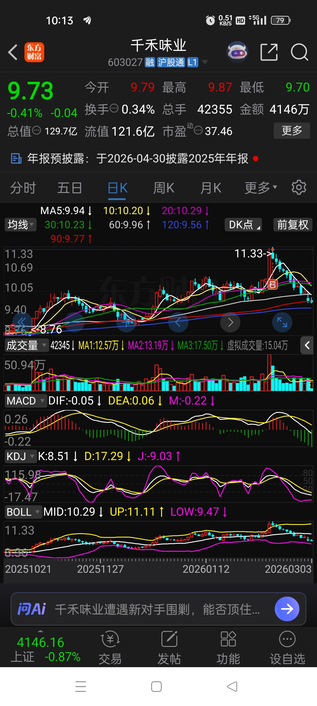 $千禾味业(SH603027)$ 窝曹没遇见过跌的这么丝滑的