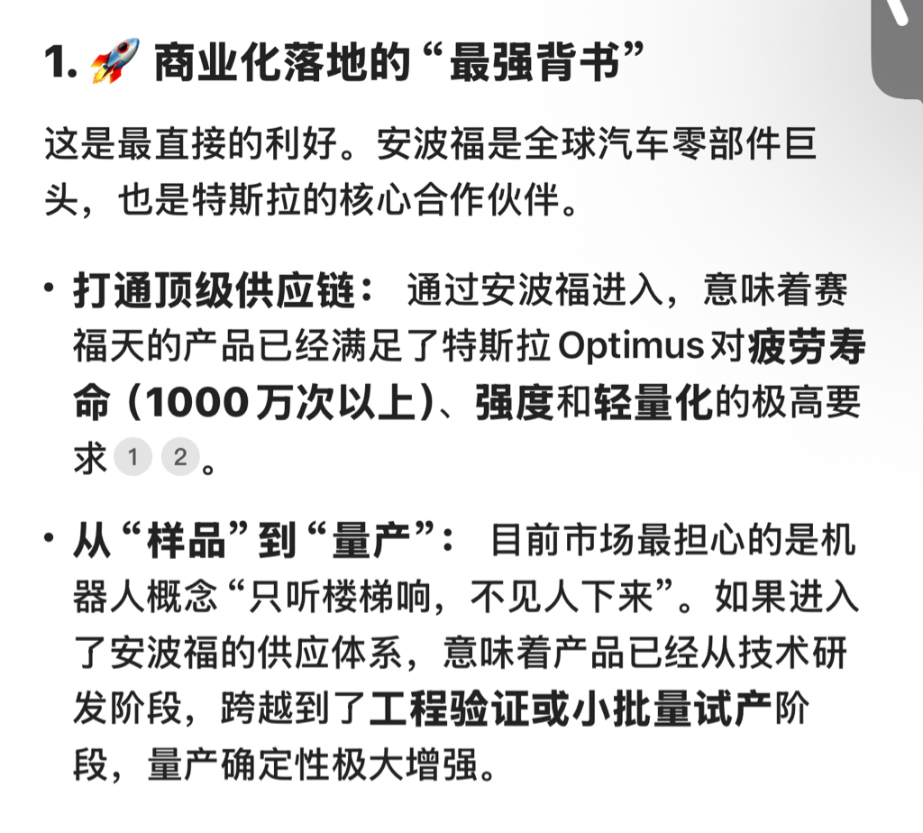 $赛福天(SH603028)$ 通过安波福间接进入特斯拉Optimus测试 未来可期