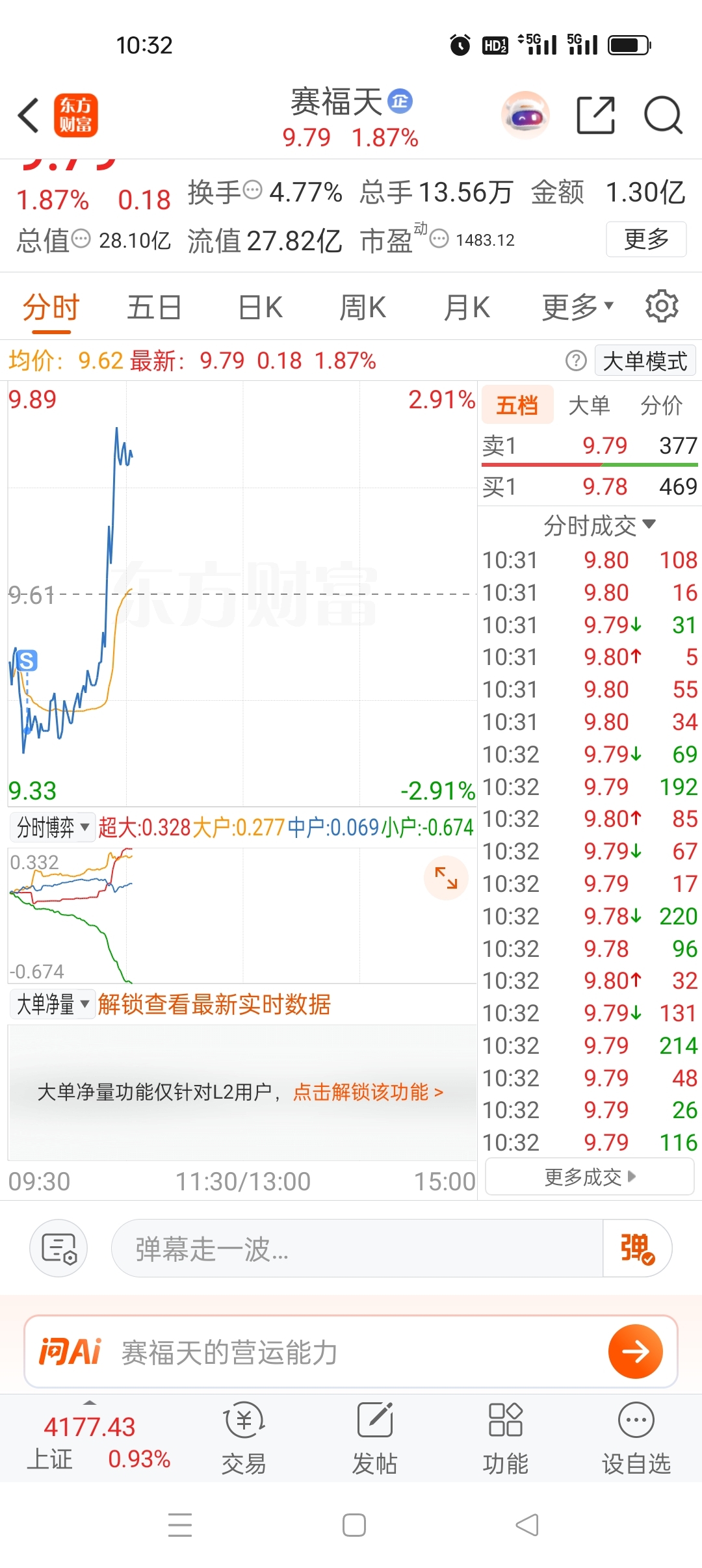 $赛福天(SH603028)$ 是不是有监控,一卖就涨