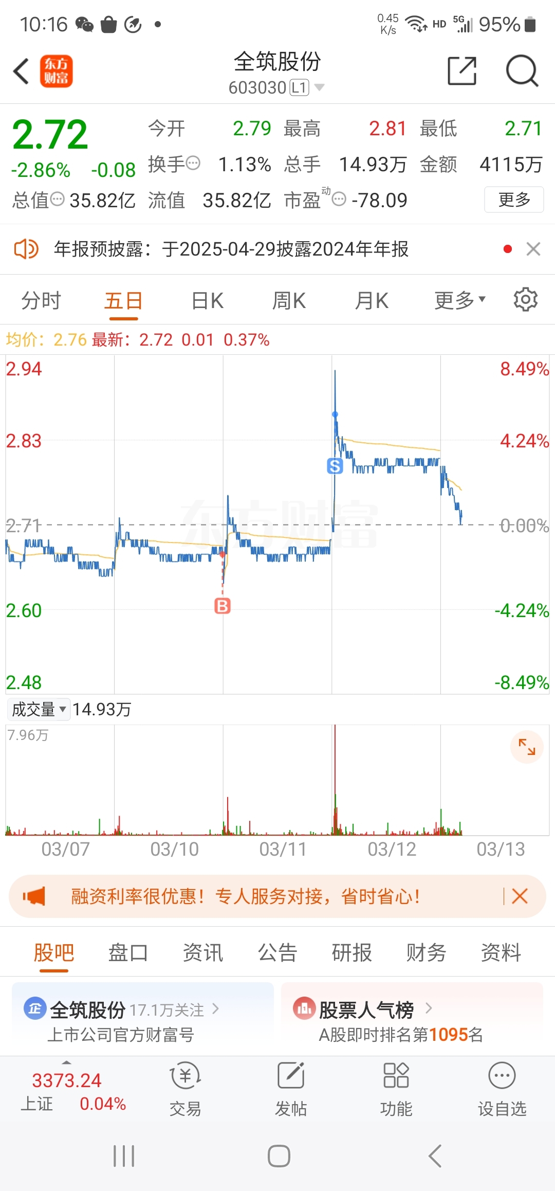 $全筑股份(SH603030)$ 前天进的,昨天跑了。没注意盯盘。6个点跑了。然后看了一下,星期五尾盘打算结回来。或者准备买星光农机