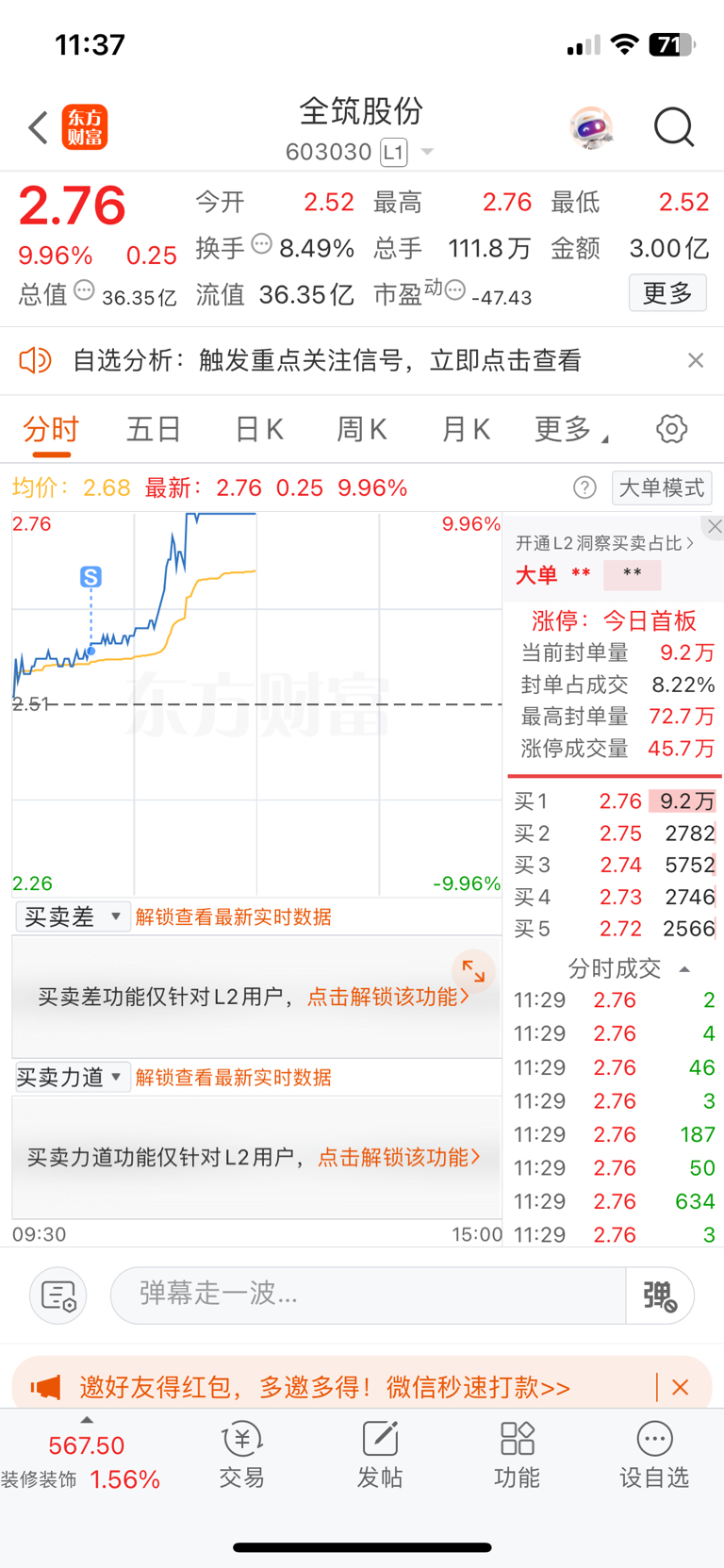 $全筑股份(SH603030)$ 没这个命,卖掉11万,就起飞。哎