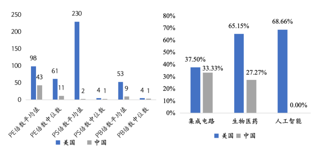 左图:2015年以来美国和中国科创企业并购估值情况对比