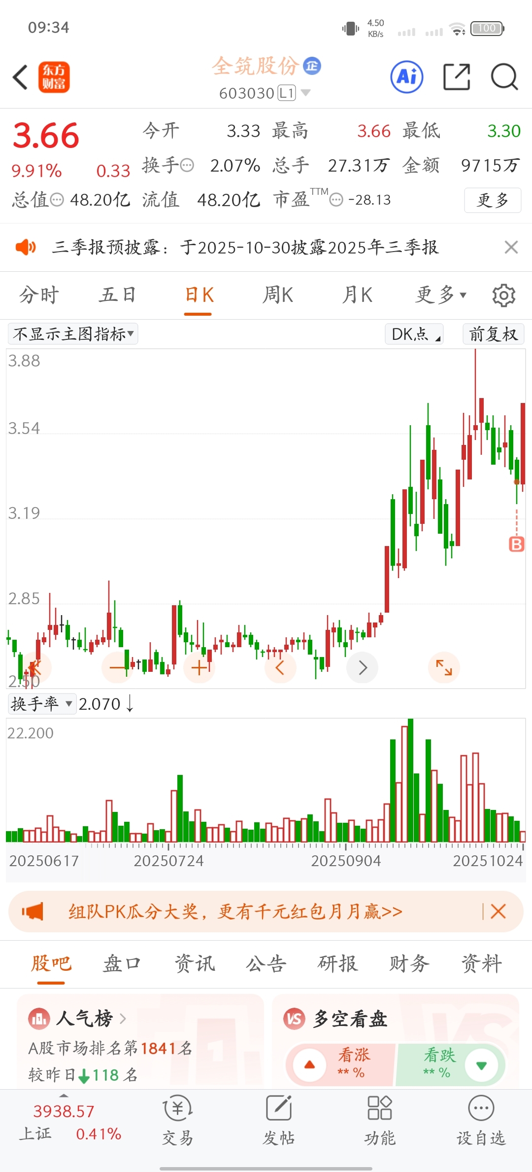 $全筑股份(SH603030)$ 主力你带我不薄