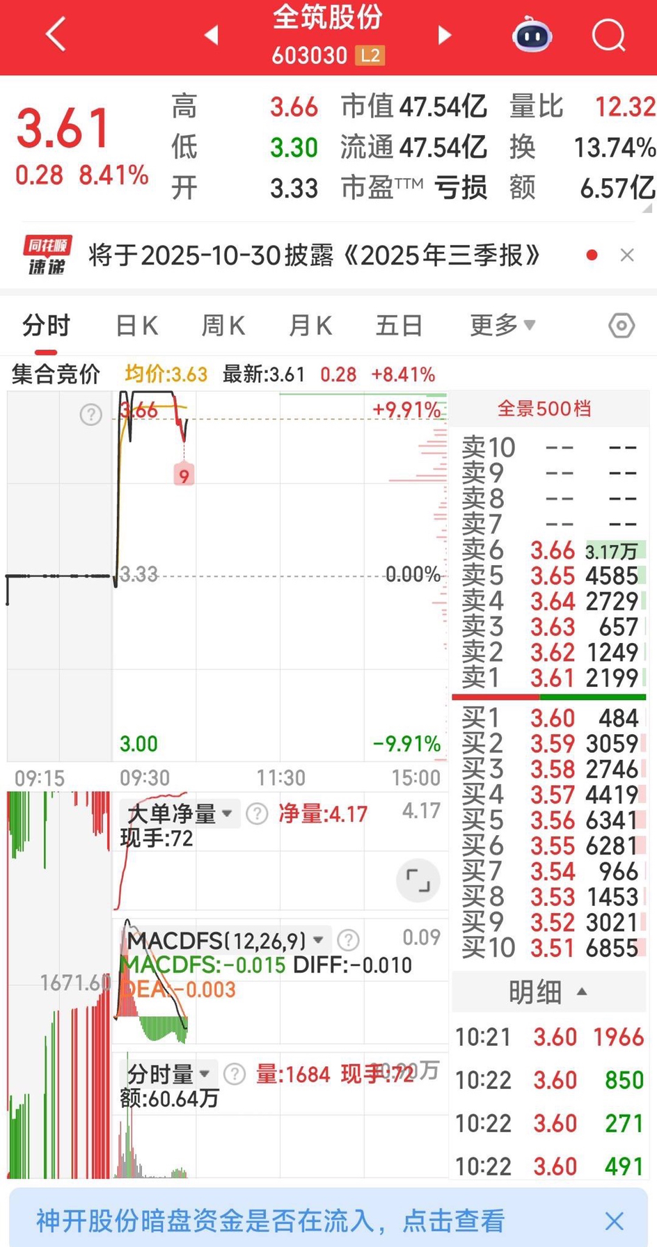 盘中可关注全筑股份,涨停破口接人上车,可关注。