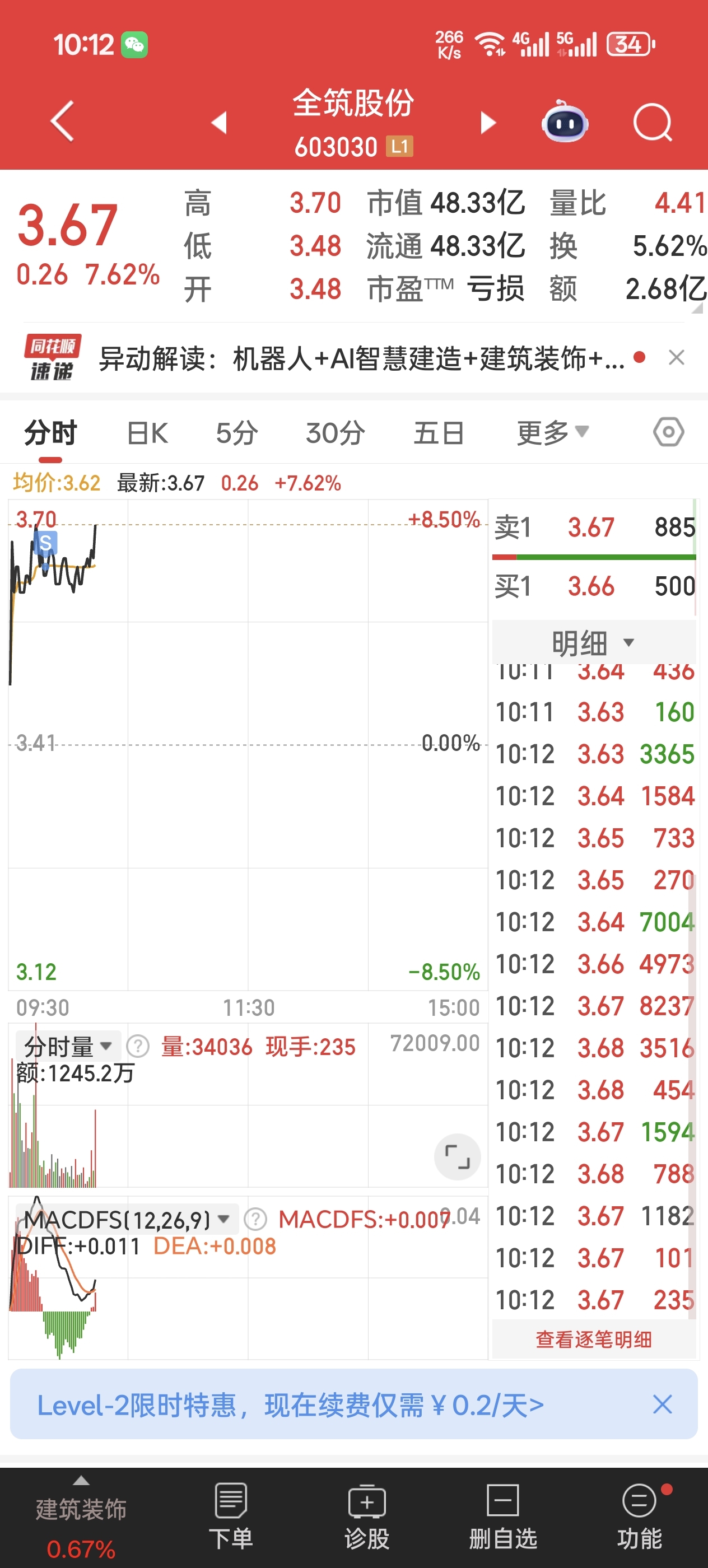 $全筑股份(SH603030)$ 老毒物压不住你,飞吧飞吧,走了