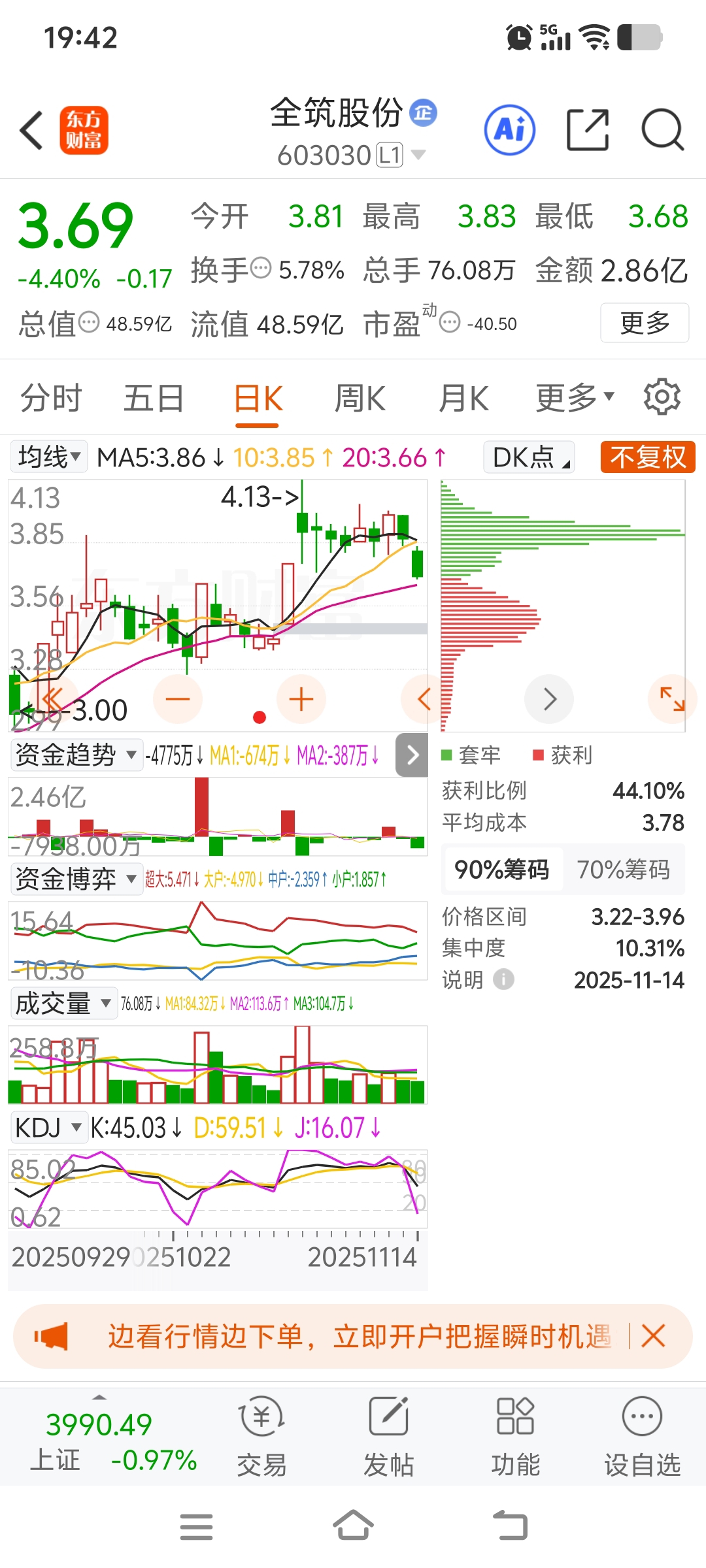 $全筑股份(SH603030)$ k线图形+成交量,属于标准的缩量洗盘模型,昨天和今天属于小量出货,买卖点并未出现,成交量+筹码集中度+缺口分析,这股大主力操盘并未真正出货,被套的持有,打算介入的等买点产生!