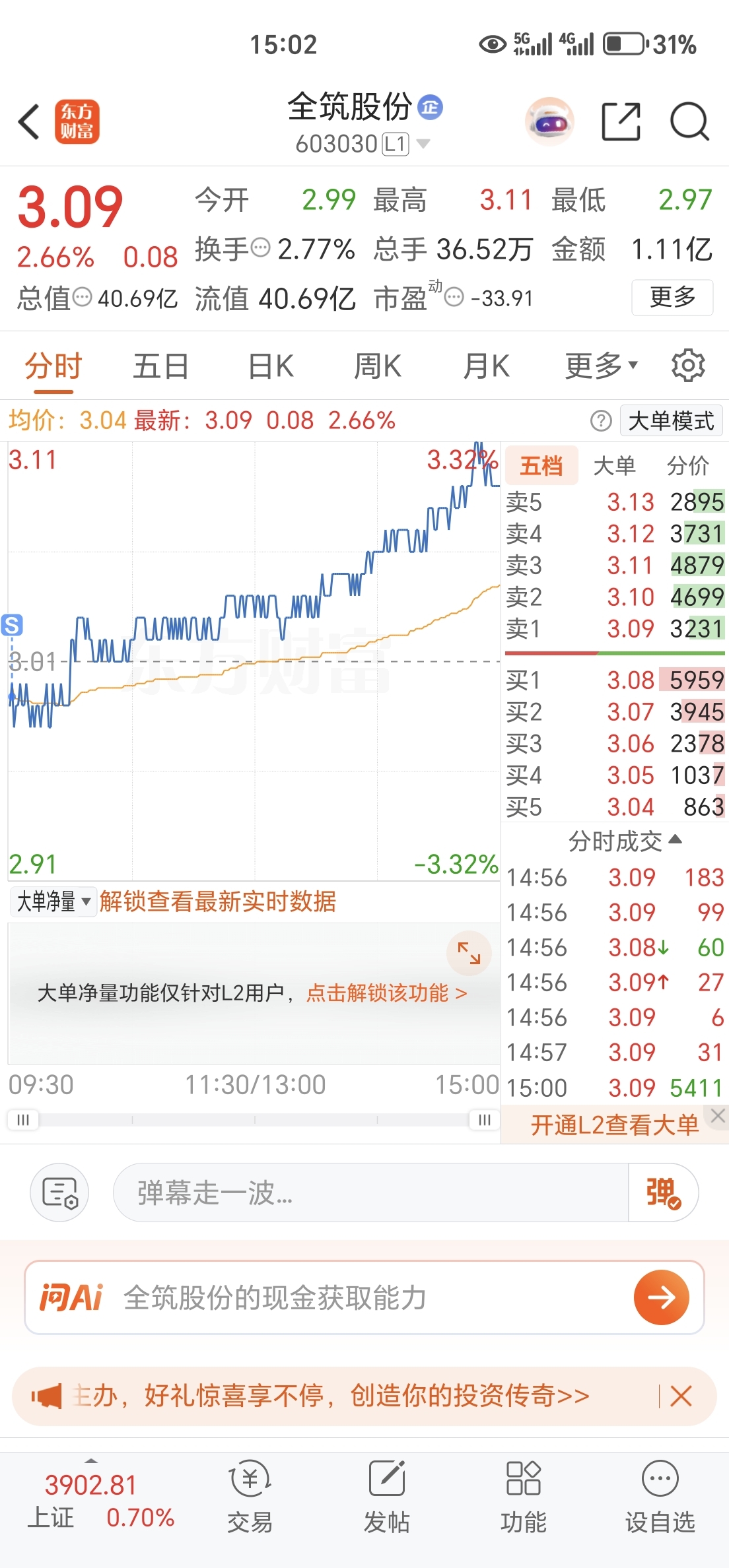 $全筑股份(SH603030)$ 走了,全筑亏了半个月,今天进了厦门国贸,也算没白割,不心疼