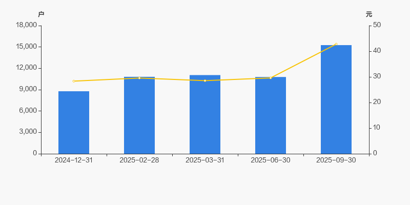 2024年12月31日至今,公司股东户数显著大幅增长,区间涨幅达73.82%。2024年12月31日至2025年9月30日区间股价上涨50.97%。