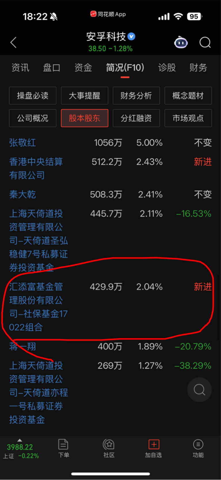 $安孚科技(SH603031)$ 三季报显示,社保基金进来了