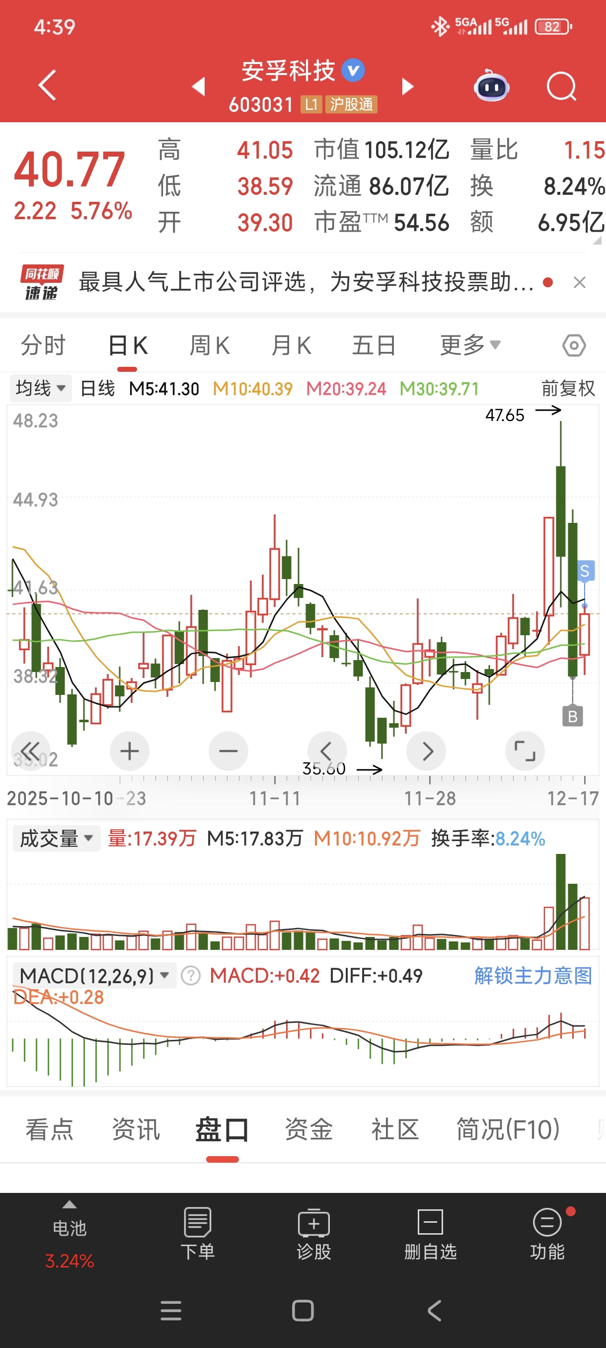 $安孚科技(SH603031)$ 昨天跌停买入,股吧都买唱空,有点怕,等到最后几分钟清仓了,