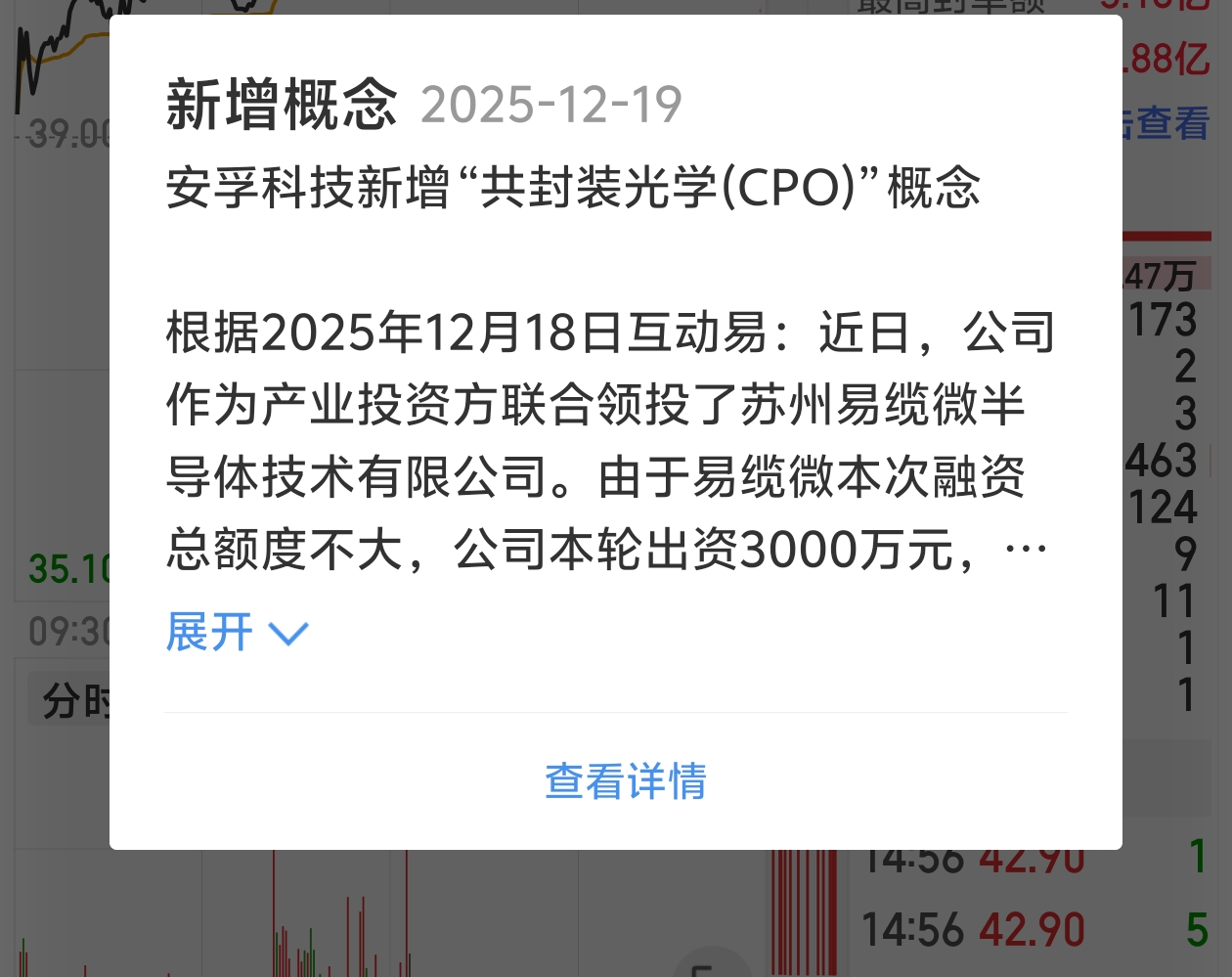 $安孚科技(SH603031)$ 16号就维护了同花和东财的cpo概念,同花的增上了,东财的估计又失败了,上次AIPC概念也是这样