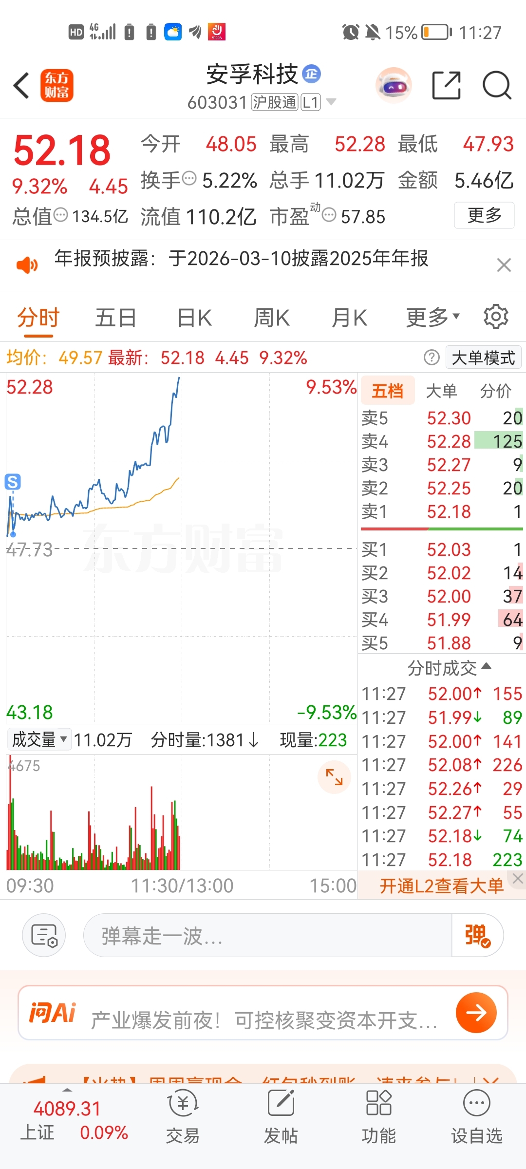 $安孚科技(SH603031)$ 好难受