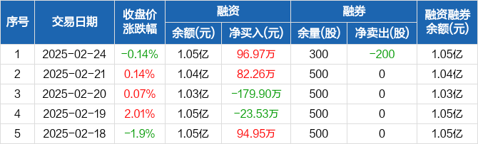 德新科技:融资净买入96.97万元,融资余额1.05亿元(02-24)