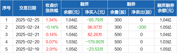 德新科技:融资净偿还95.79万元,融资余额1.04亿元(02-25)