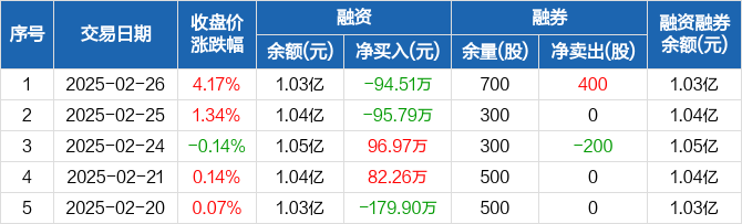 德新科技:融资净偿还94.51万元,融资余额1.03亿元(02-26)