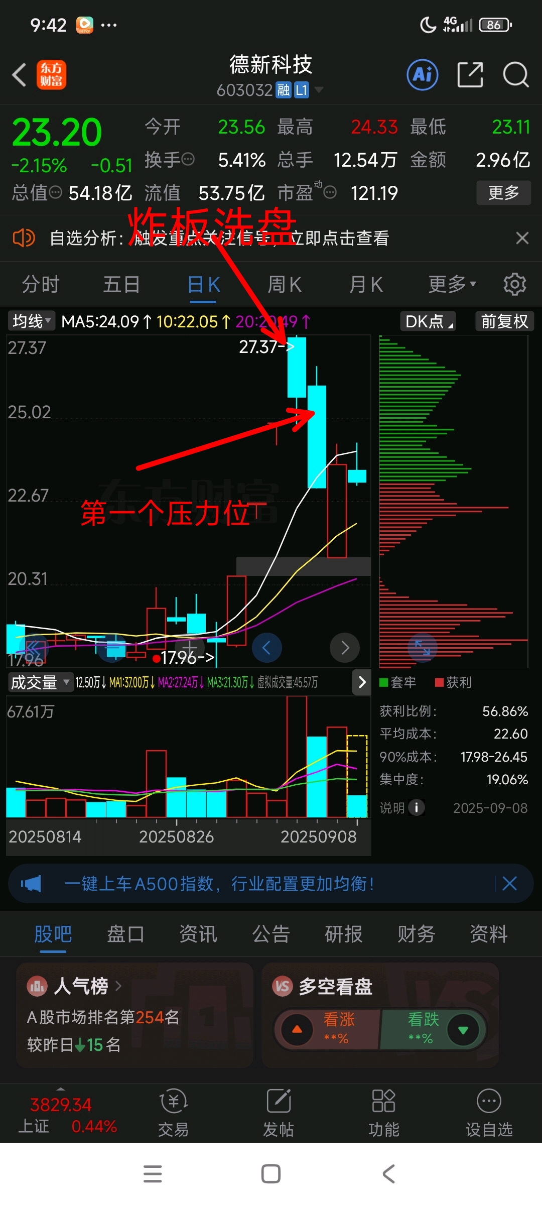 $德新科技(SH603032)$ 可能洗1-3天,运气好今天就涨停!压力位25-26,会反复次探这个价格!