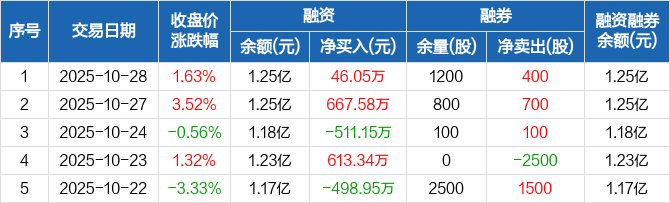 德新科技:融资净买入46.05万元,融资余额1.25亿元(10-28)