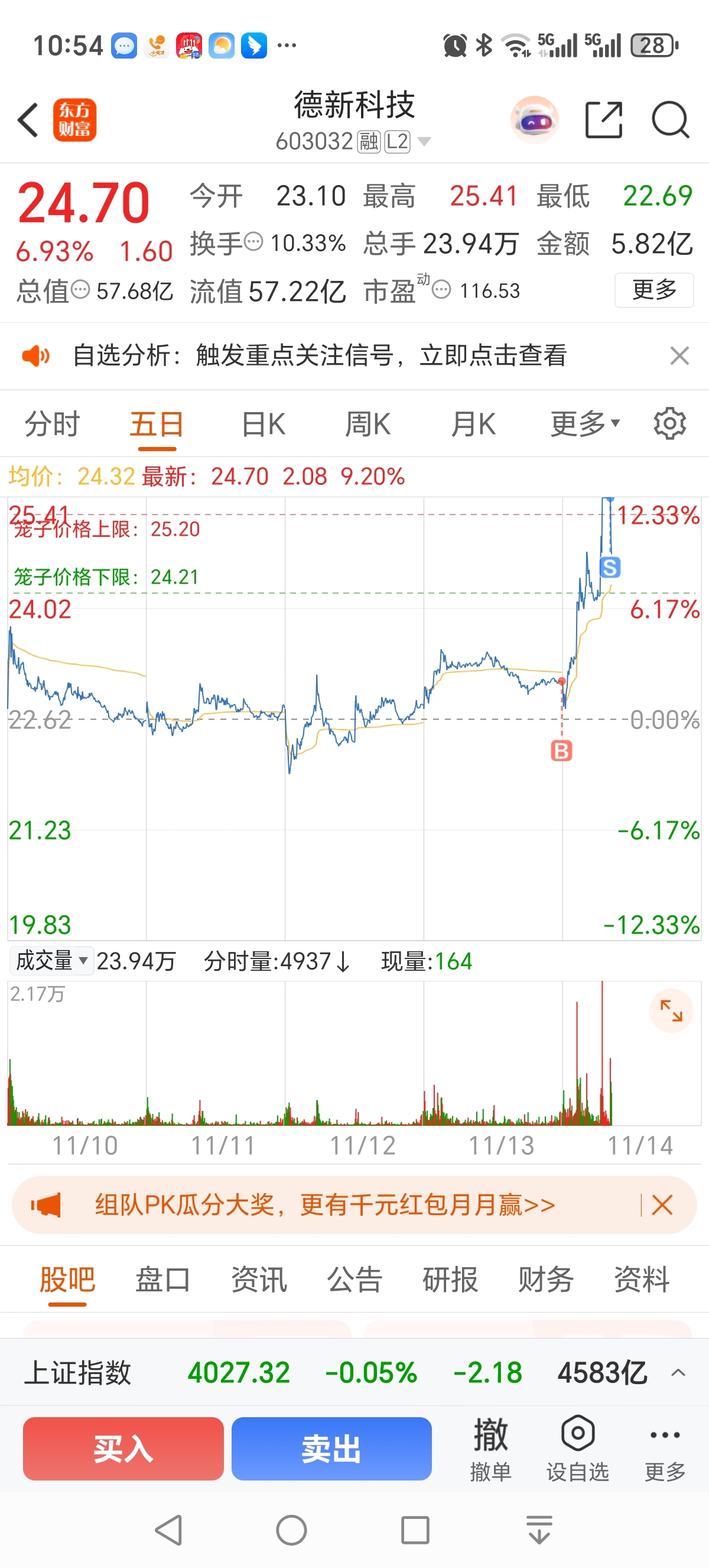 @妙想 $德新科技(SH603032)$ 下来晚点再买进