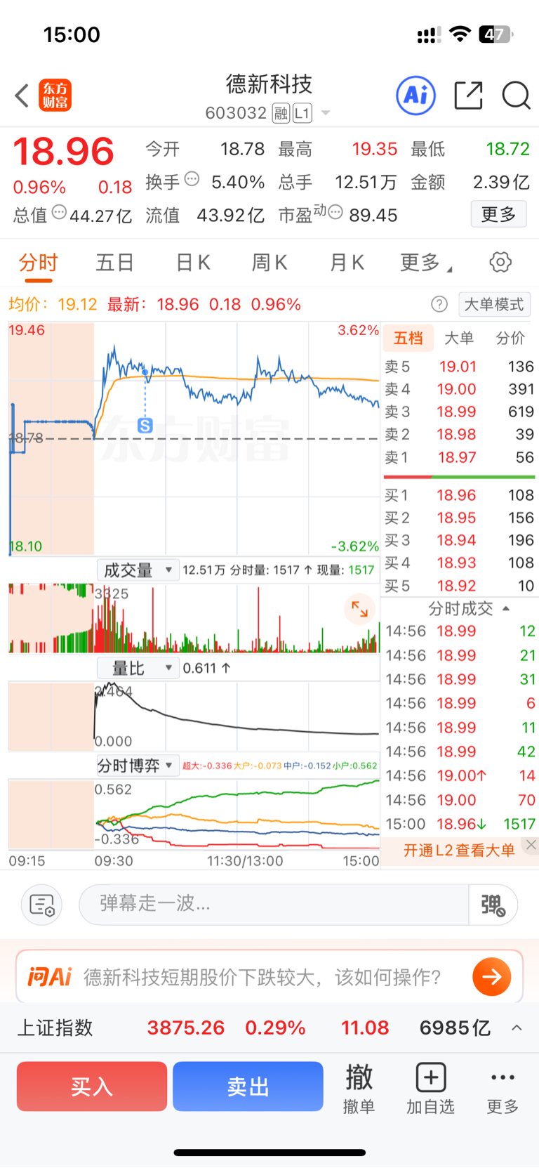 $德新科技(SH603032)$ 今天长上影,明天长下影,明天18.26接回