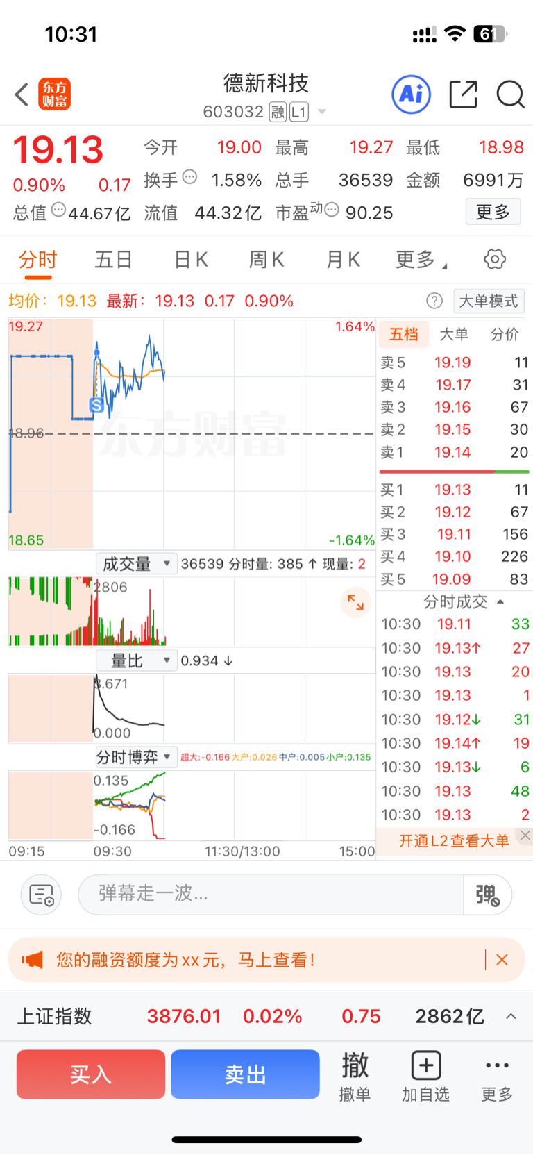 $德新科技(SH603032)$ 放量不拉,主力对敲做T 跌下去买,有的是机会