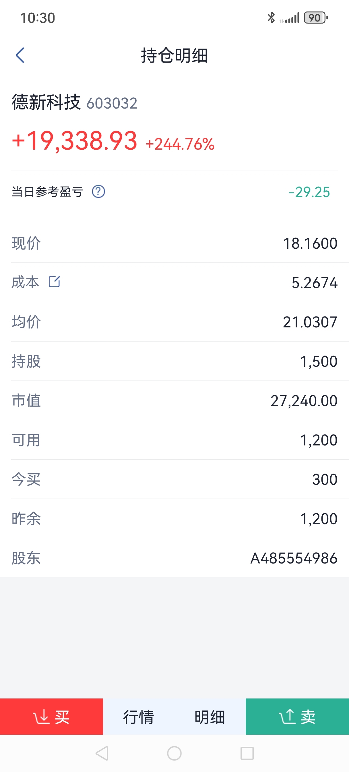 $德新科技(SH603032)$ 我留1500股,成本从26元做到现在5元多,爱怎么跌怎么跌去,难不成还能跌到4元?