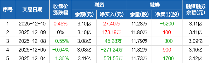 三维股份:融资净买入27.4万元,融资余额3.1亿元(12-10)