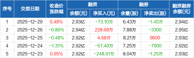 三维股份:融资净偿还73.1万元,融资余额2.93亿元(12-29)