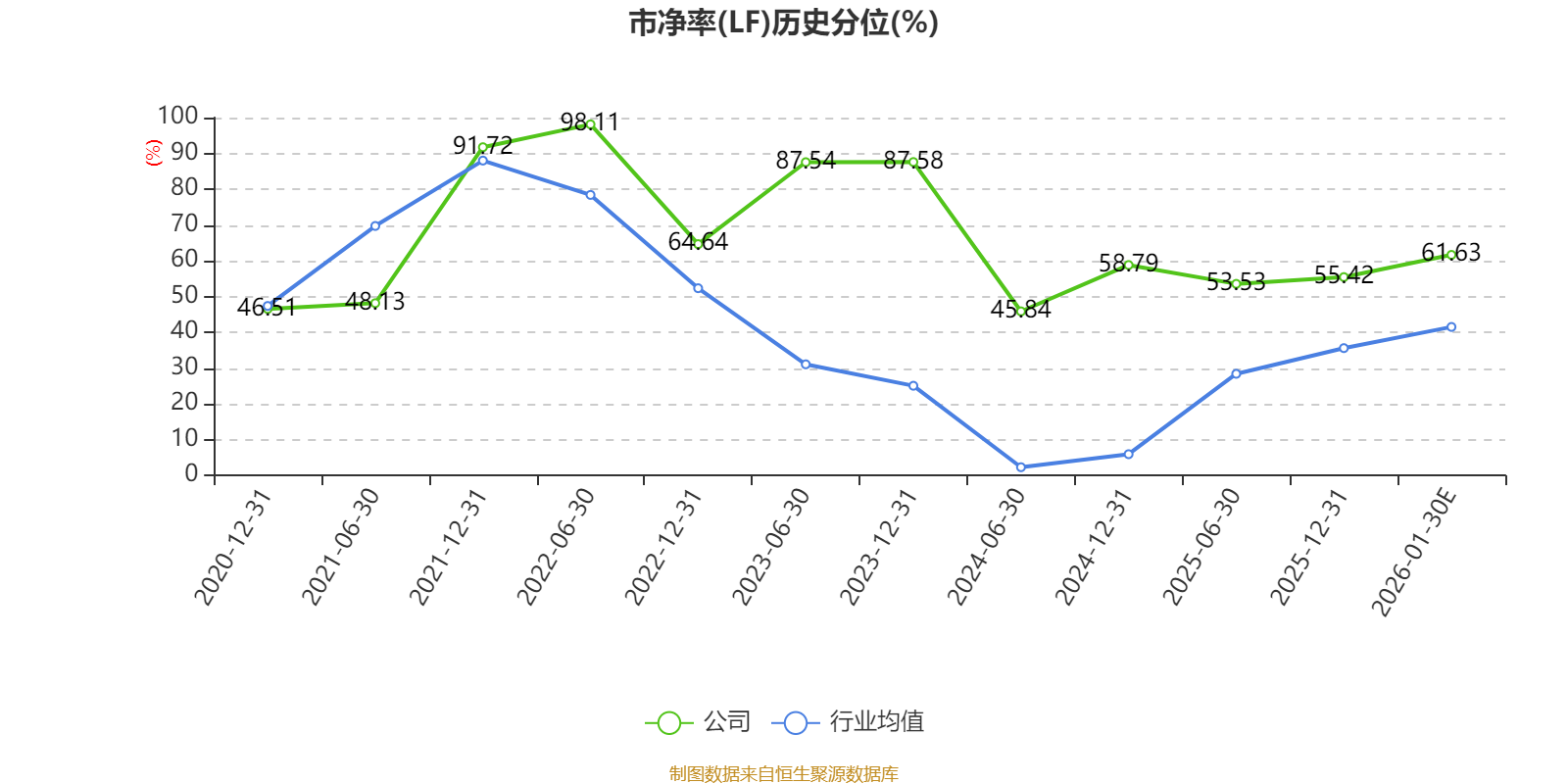 市盈率、市净率为负时,不显示当期分位数,会导致折线图中断。