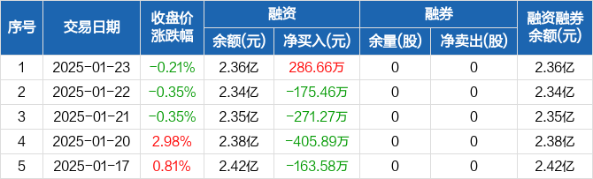常熟汽饰:融资净买入286.66万元,融资余额2.36亿元(01-23)
