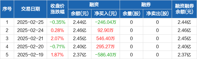 常熟汽饰:融资净偿还246.04万元,融资余额2.44亿元(02-25)