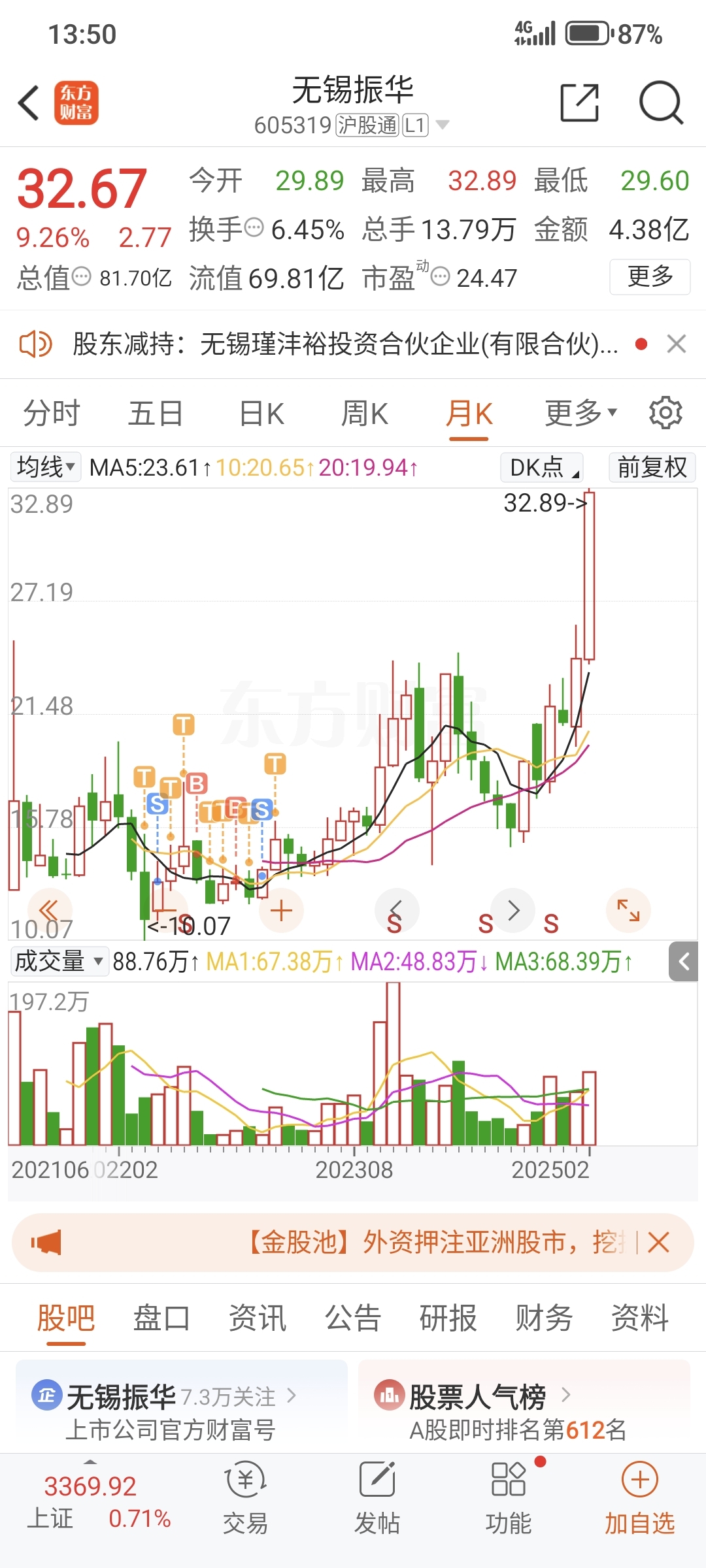 $常熟汽饰(SH603035)$ 今天表扬下,小赚1万,但是看着无锡振华,心难平,情愿没有遇到你,振华换的你