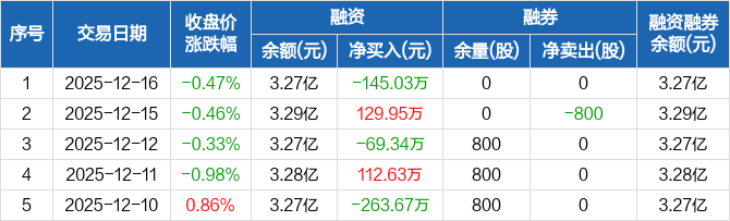 常熟汽饰:融资净偿还145.03万元,融资余额3.27亿元(12-16)