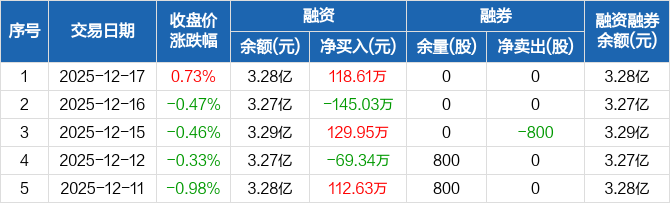 常熟汽饰:融资净买入118.61万元,融资余额3.28亿元(12-17)